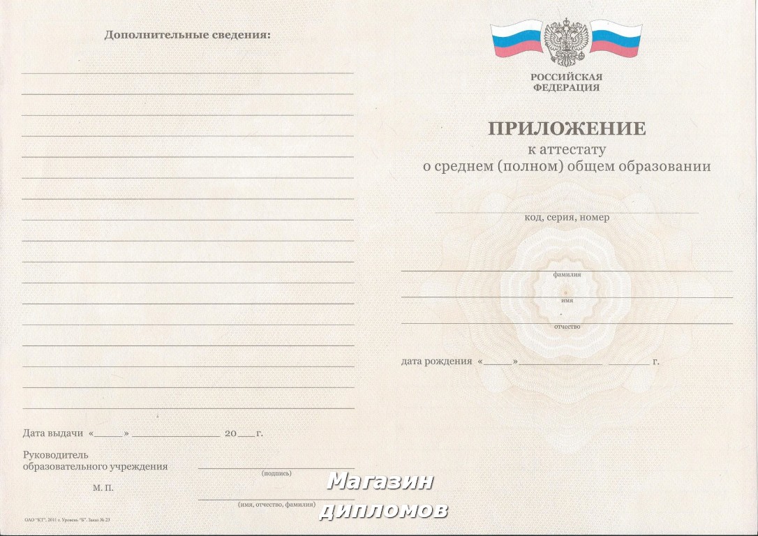 Аттестат Российской Федерации за 11 классов, выдавался с 2014 года
